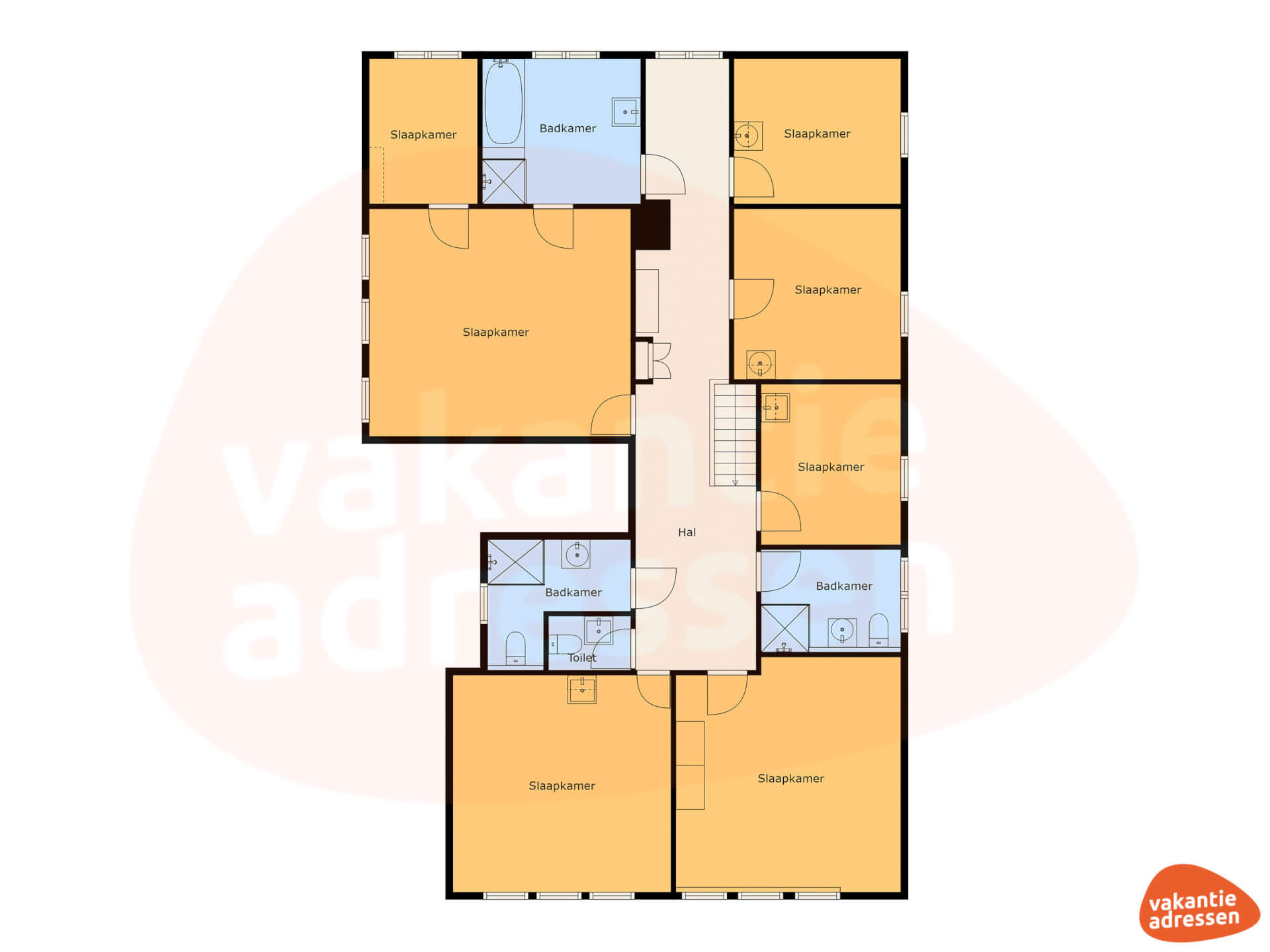 Die 8 Schlafzimmer und 4 Badezimmer verteilen sich auf zwei Etagen. Im Erdgeschoss finden Sie ein Doppelzimmer und ein Badezimmer. Im ersten Stock befinden sich fünf Doppelzimmer, zwei Dreibettzimmer, zwei Badezimmer und eine separate Dusche und Toilette. Alle Schlafzimmer sind gemütlich eingerichtet und haben bequeme Betten, die Badezimmer sind sehr geräumig und mit Dusche, Toilette und Waschbecken ausgestattet. Außerdem verfügt eines der Badezimmer im ersten Stock über eine Badewanne, die für einen Moment der totalen Entspannung sorgt.