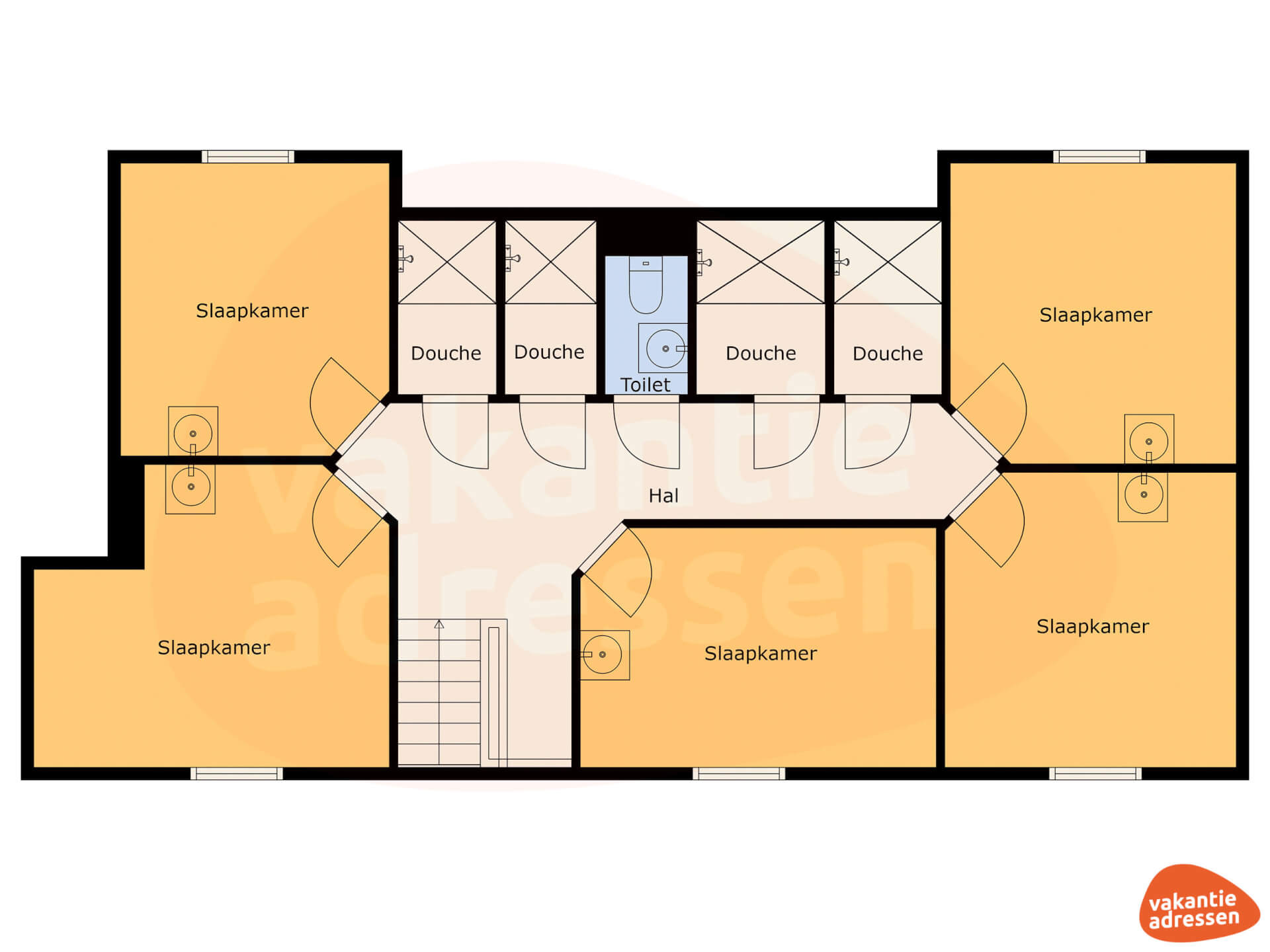 Haus 2 hat 5 Schlafzimmer und 3 Badezimmer. Im Erdgeschoss befindet sich 1 behindertengerechtes Schlafzimmer mit elektrischen Hoch-Tief-Betten und einem eigenen Badezimmer mit Dusche und Toilette. Im Obergeschoss befinden sich 4 Schlafzimmer und 2 Badezimmer. Auch hier haben alle Schlafzimmer bequeme Einzelbetten und ein Waschbecken.