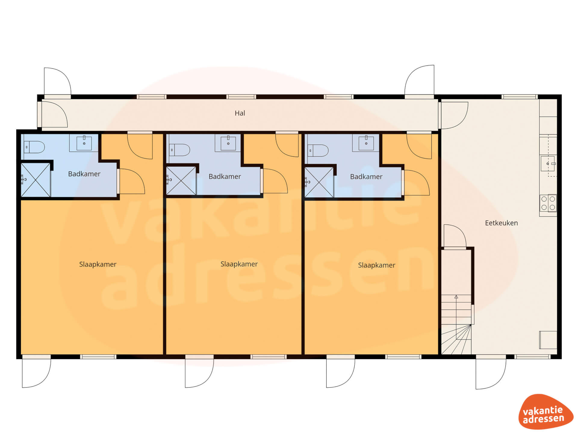 Bei 15 / 16 / 17 Personen: 8 Schlafzimmer + 5 Badezimmer/Duschen