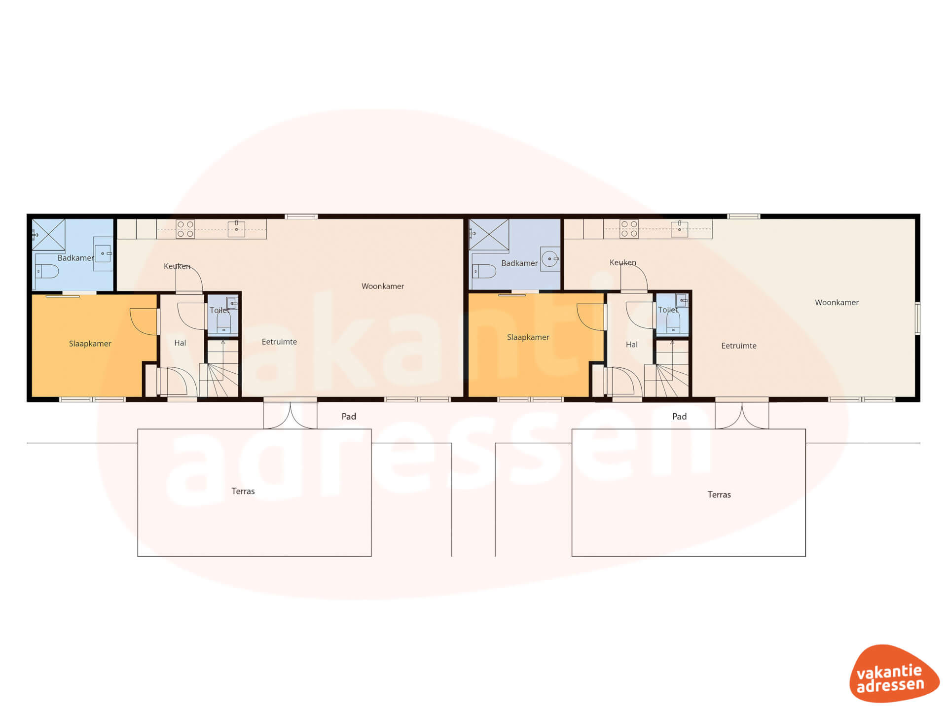 Der Vorteil der Anmietung von zwei Ferienhäusern besteht darin, dass Sie über ein doppeltes Wohnzimmer/eine doppelte Küche verfügen und sich die Gruppe somit leicht aufteilen kann. Es ist zu beachten, dass es nicht möglich ist, mit 16 Personen in einem Ferienhaus zu essen und/oder zu übernachten, da die Ferienhäuser dafür zu klein sind.