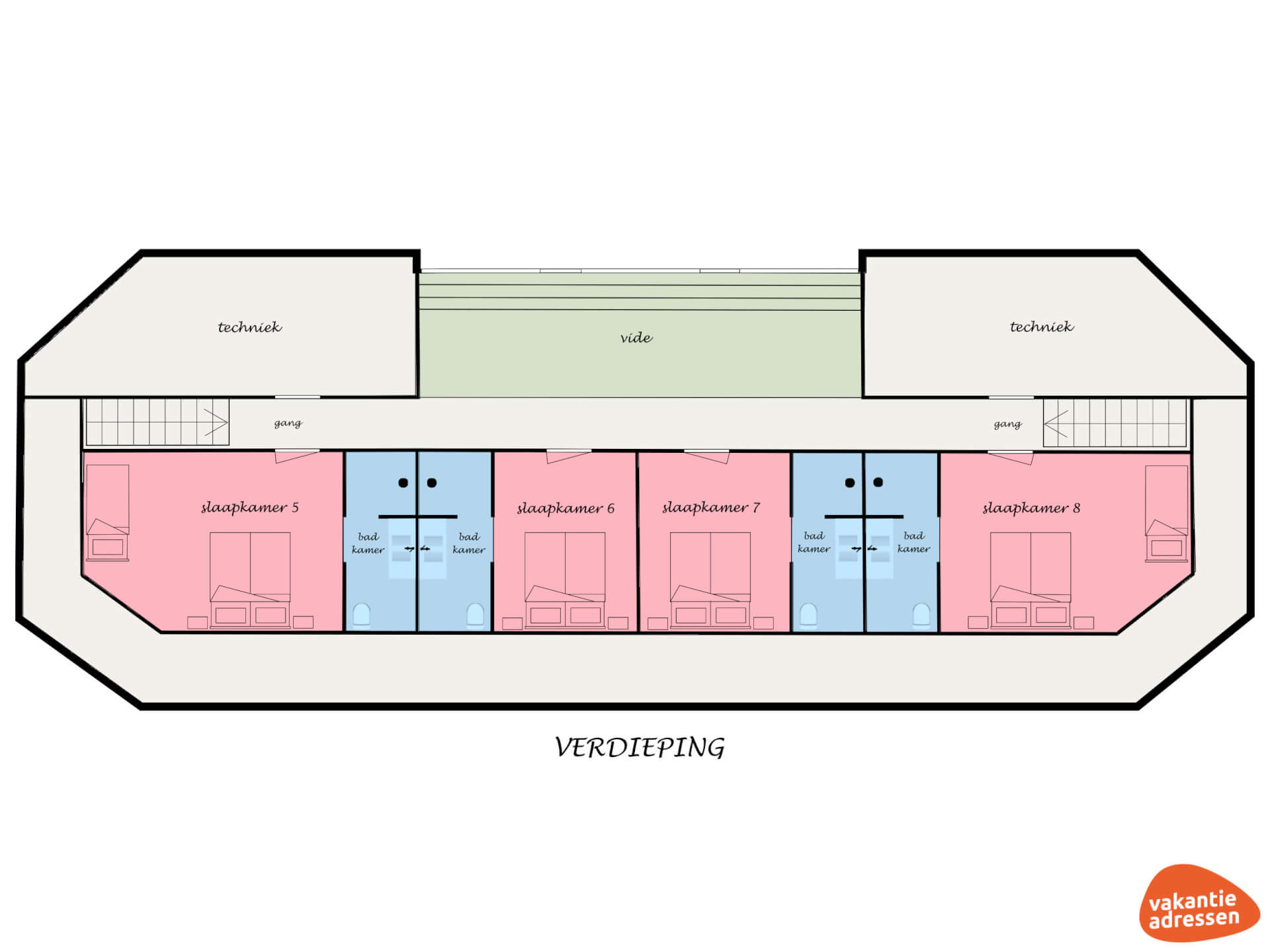 Schlafzimmer 7: 2x Einzelbett + Dusche, Toilette und Waschbecken