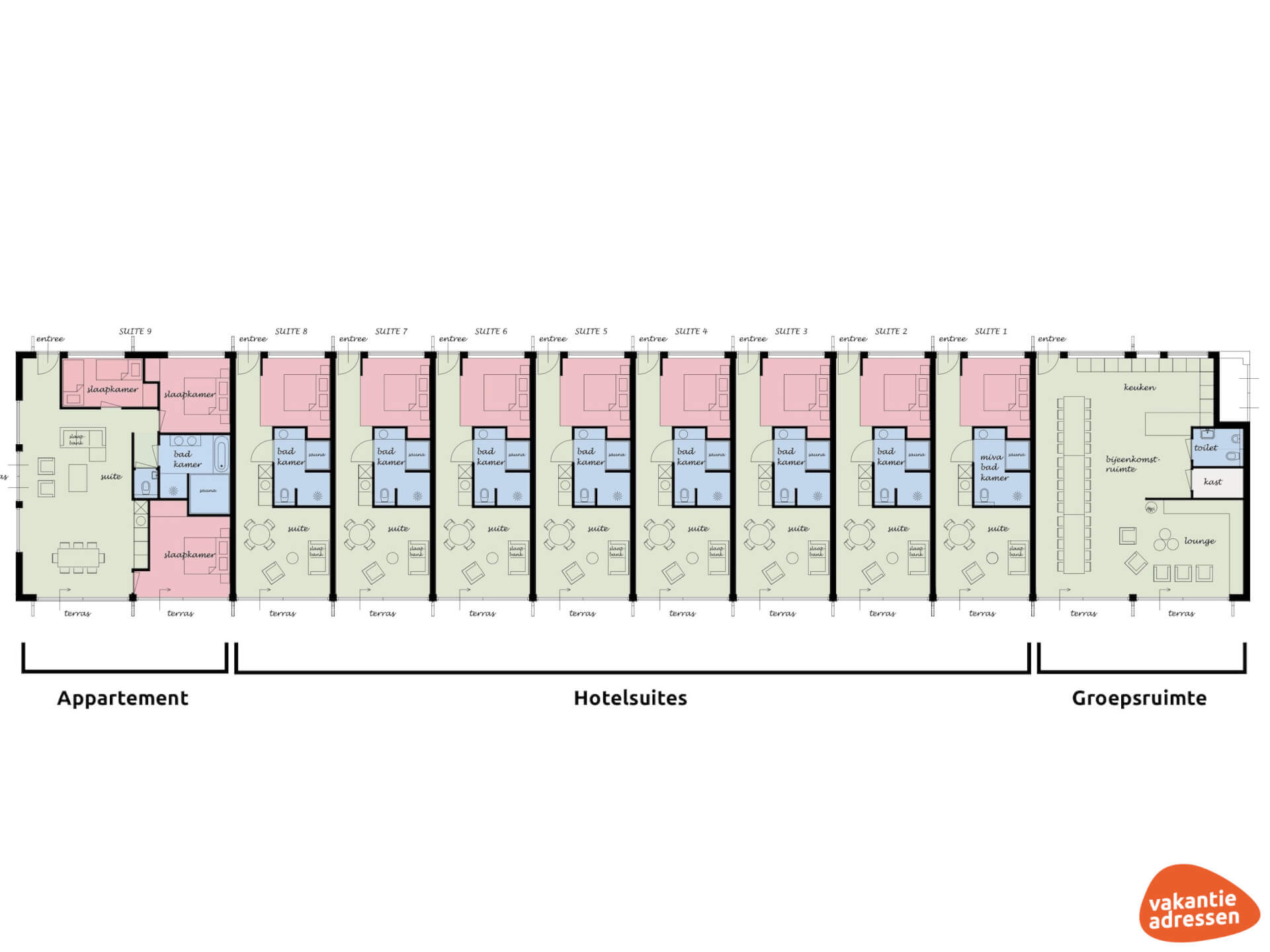 Hotelsuiten 1 bis 8 (Erdgeschoss)