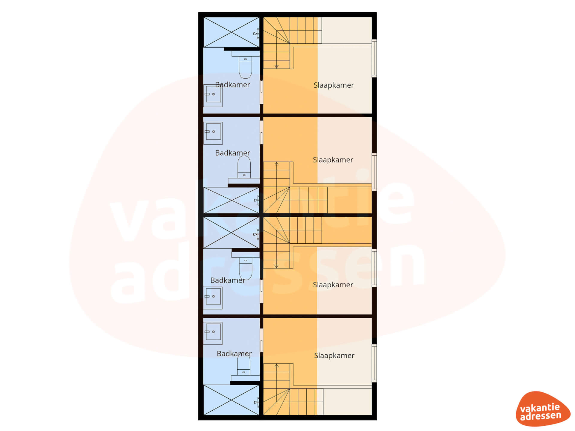 Insgesamt gibt es 10 Schlafzimmer, die sich auf die beiden Häuser verteilen. In jedem Haus befindet sich ein Schlafzimmer mit eigenem Badezimmer im Erdgeschoss, was für Gäste mit eingeschränkter Mobilität angenehm ist. Die übrigen Zimmer folgen dem gleichen Tiny-House-Layout: ein Schlafsofa im Erdgeschoss und zwei zusätzliche Schlafplätze im Dachgeschoss, jeweils mit eigenem Badezimmer. Diese praktische und zeitgemäße Aufteilung sorgt dafür, dass jeder ausreichend Platz und Privatsphäre hat, während die Atmosphäre in beiden Häusern warm und gemütlich bleibt. Alle Badezimmer sind mit einer Dusche, einer Toilette und einem Waschbecken ausgestattet, sodass sich jeder zu seiner eigenen Zeit in Ruhe zurückziehen kann.